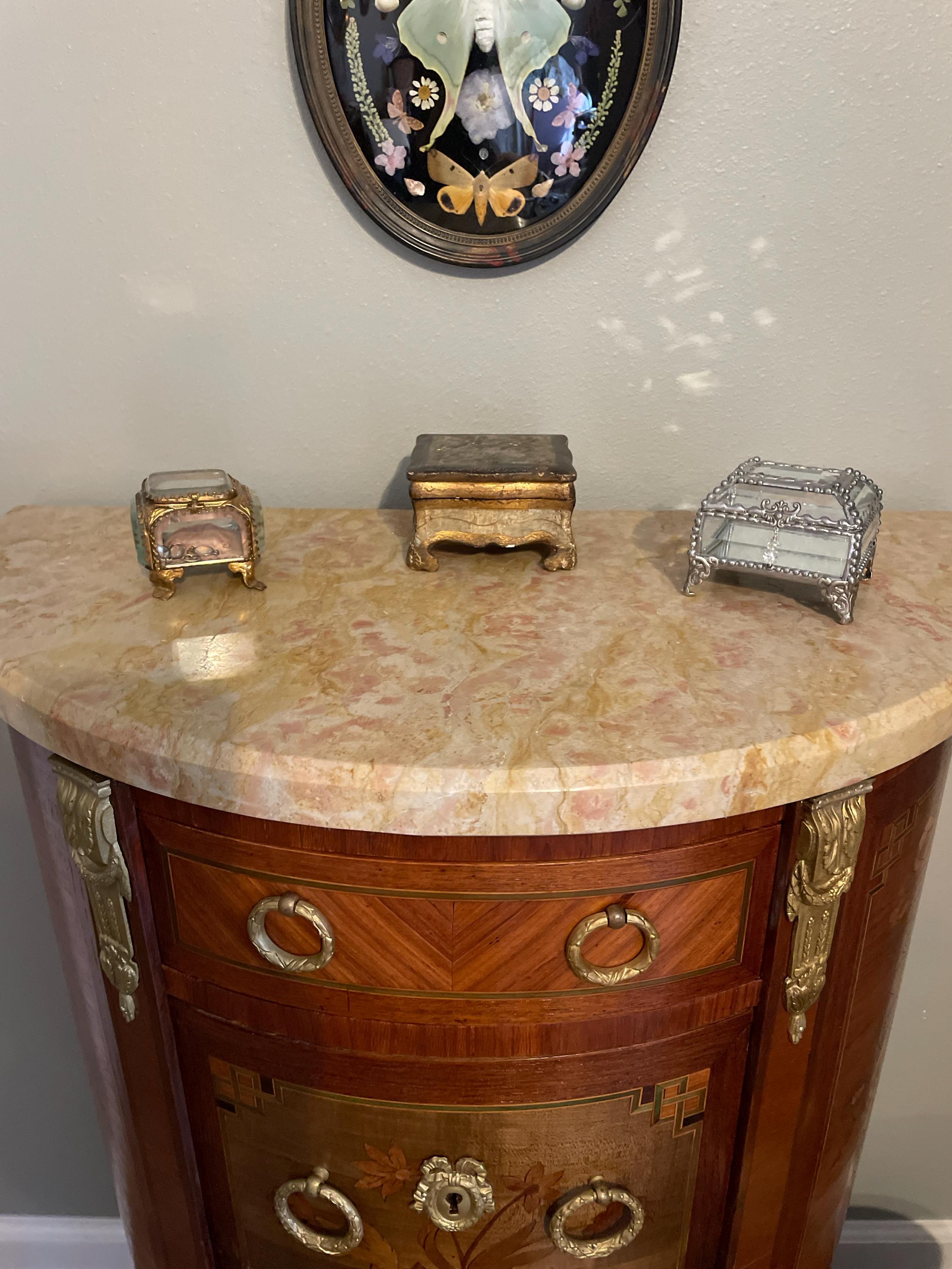 It’s wonderful. I have an antique one from France. I have them on either side of an antique chest. It’s a wonderful recreation. Well made. Looks great. Needs a satin pillow at the bottom though. Delivered in a timely manor.